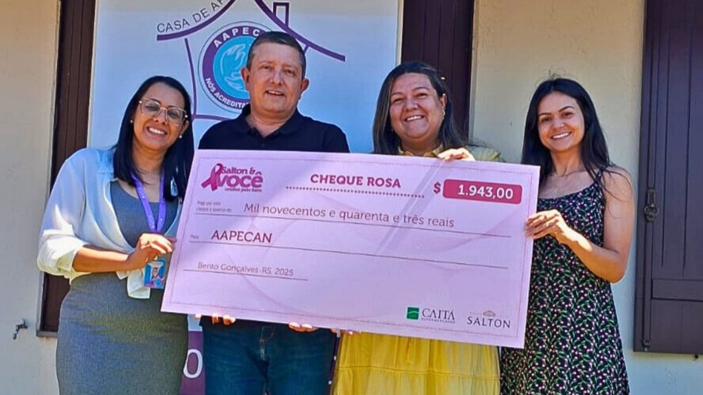 A Associação de Apoio a pessoas com Câncer (Aapecan) Unidade Bento Gonçalves recebeu, nesta semana, um cheque simbólico no valor de R$ 1.943,00, resultado de uma ação solidária realizada durante o mês de outubro pela Vinícola Salton, em parceria com o Caitá Supermercados. A iniciativa destinou parte das vendas de produtos Salton — sucos, vinhos […]