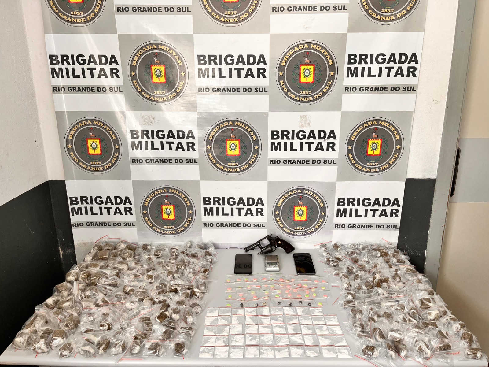 Durante a ocorrência, foram apreendidos 4,1 quilos de maconha, além de cocaína, ecstasy e haxixe. Os policiais também localizaram um revólver calibre 38 com numeração suprimida, uma balança de precisão e dois telefones celulares.