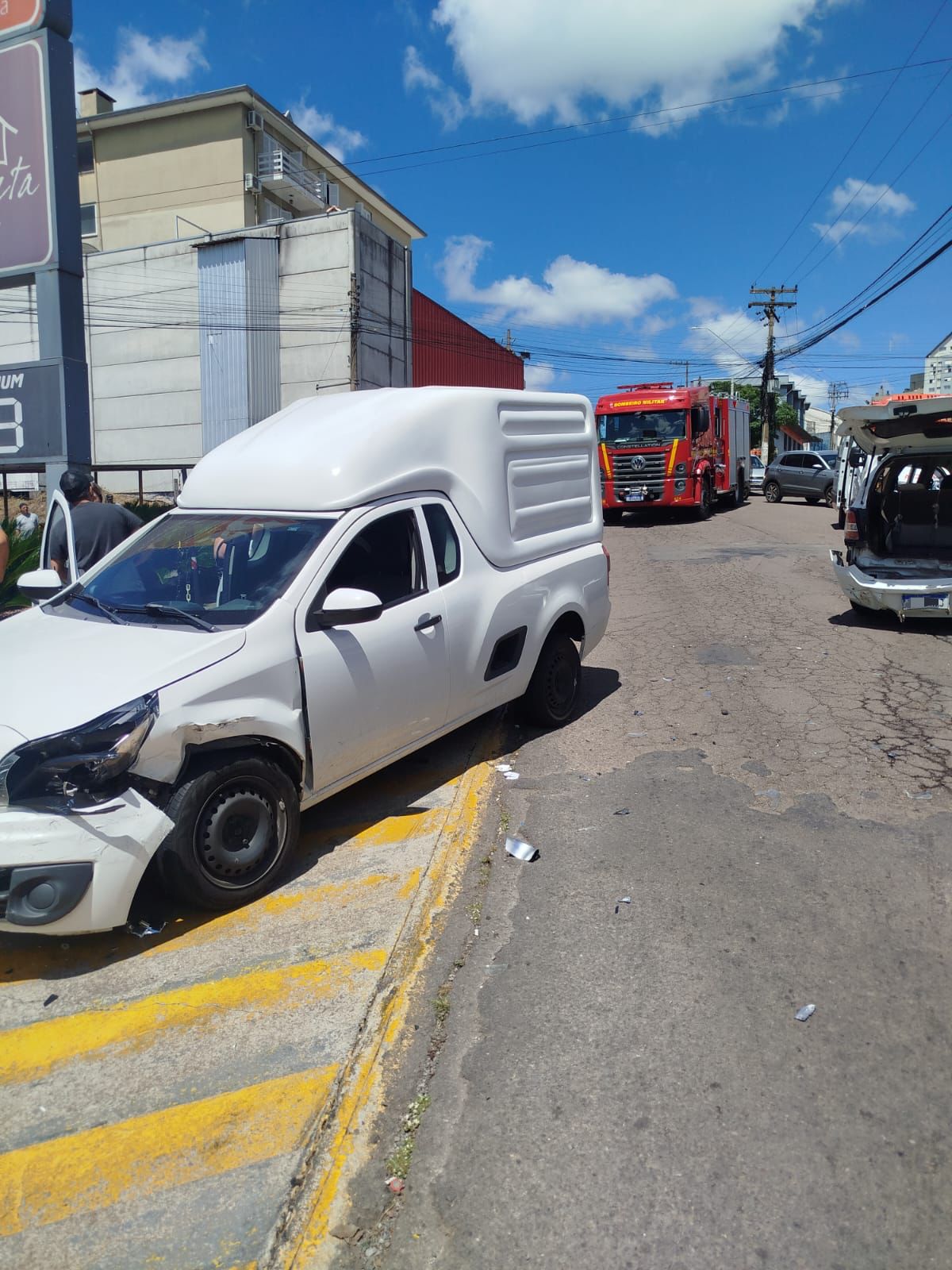 Ao chegar ao local, foi constatado de se tratar de uma colisão de carro com um poste e em seguida outra colisão entre dois carros.