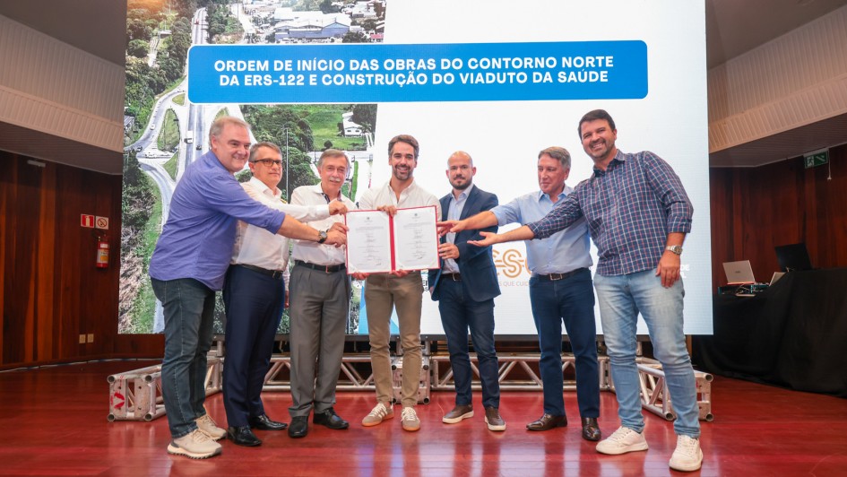 O governador Eduardo Leite deu ordem de início, nesta segunda-feira (16/3), para as obras do Viaduto da Saúde e da duplicação de 11 quilômetros do contorno norte de Caxias do Sul, na rodovia ERS-122, que integra a concessão do Bloco 3. A autorização para as intervenções ocorreu em evento realizado no salão da Comunidade Nossa Senhora da Saúde, em Caxias do Sul, com a presença do prefeito Adiló Didomenico, secretários estaduais, lideranças regionais e representantes da concessionária Caminhos da Serra Gaúcha (CSG), que administra as rodovias do bloco.