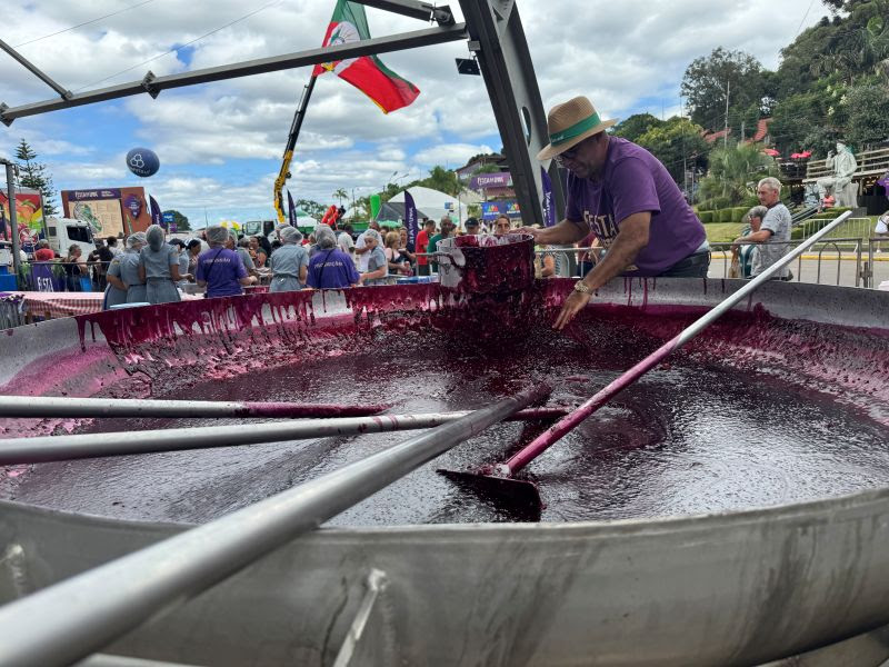 A Festa Nacional da Uva 2026 teve, na manhã deste sábado (21/02), um dos momentos mais aguardados pelo público: o Saguzaço, realizado no Parque de Eventos Mário Bernardino Ramos. A atração produziu cerca de uma tonelada do tradicional sagu de vinho, distribuída gratuitamente aos visitantes em milhares de porções, reforçando o caráter comunitário e afetivo que marca a história da Festa.