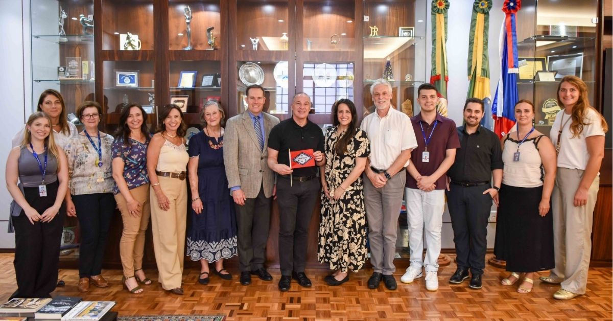 A Universidade de Caxias do Sul recepcionou, no dia 6 de março, uma delegação da cidade norte-americana de Little Rock, capital do estado de Arkansas (EUA). A visita teve como objetivo fortalecer laços institucionais, culturais e econômicos e reforçar o compromisso de cooperação firmado há dez anos entre Caxias do Sul e Little Rock. A Universidade consolidou seu papel de articuladora desta parceria internacional, quando a comitiva foi recepcionada pelo vice-reitor e reitor eleito à Gestão 2026-2030, Asdrubal Falavigna, e pelo chefe de gabinete, Givanildo Garlet. Em Caxias, a delegação cumpriu um roteiro de cinco dias de visitas a pontos turísticos da cidade, empresas e instituições. No Campus-Sede da UCS, conheceu espaços estratégicos da Instituição, como o Parque de Ciências, Tecnologia e Inovação (TecnoUCS). No último domingo, 8 de março, a comitiva esteve no encerramento da 35ª Festa da Uva. Participaram da visita Toni Carr, diretor executivo da Global Ties Arkansas; Summer Khari, diretora do programa e professora assistente na University of Arkansas for Medical Sciences; Robert Zeiler, da New Tech Global; e a comissão da Sister Cities International (SCI) em Caxias do Sul, representada pela UCS, Câmara de Indústria, Comércio e Serviços (CIC) e prefeitura.
