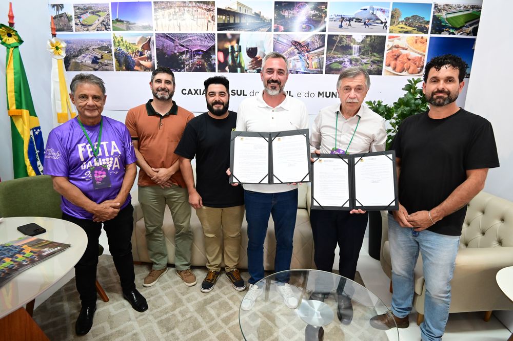 O Prefeito Adiló Didomenico assinou nesta quarta-feira (04/03) a Lei Complementar nº 815/2026 que altera dispositivos da Lei Complementar nº 632, de 21 de dezembro de 2020 (Código de Posturas do Município), para atribuir maior responsabilidade e efetividade na gestão da fiação aérea da cidade. O ato ocorreu no estande da Prefeitura no Centro de Eventos do Parque da Festa da Uva e contou com a presença do chefe da Casa Civil, Roneide Dornelles.