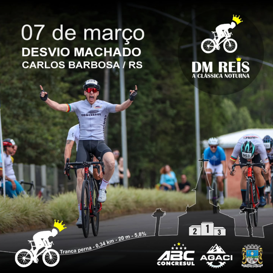 A competição será realizada na Avenida Raul Giacomoni, na localidade de Desvio Machado, e terá início às 15h. Intitulada “DM Reis Clássica Noturna”, a tradicional prova na modalidade speed é marcada pela alta velocidade dos ciclistas.