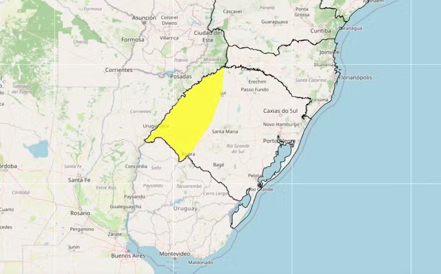 O Rio Grande do Sul começa a semana com um aviso de “perigo potencial” para tempestades emitido pelo Instituto Nacional de Meteorologia (Inmet). O aviso é válido das 15h às 23h59 desta segunda-feira (20) e abrange as regiões Noroeste, Sudoeste e Central do estado.