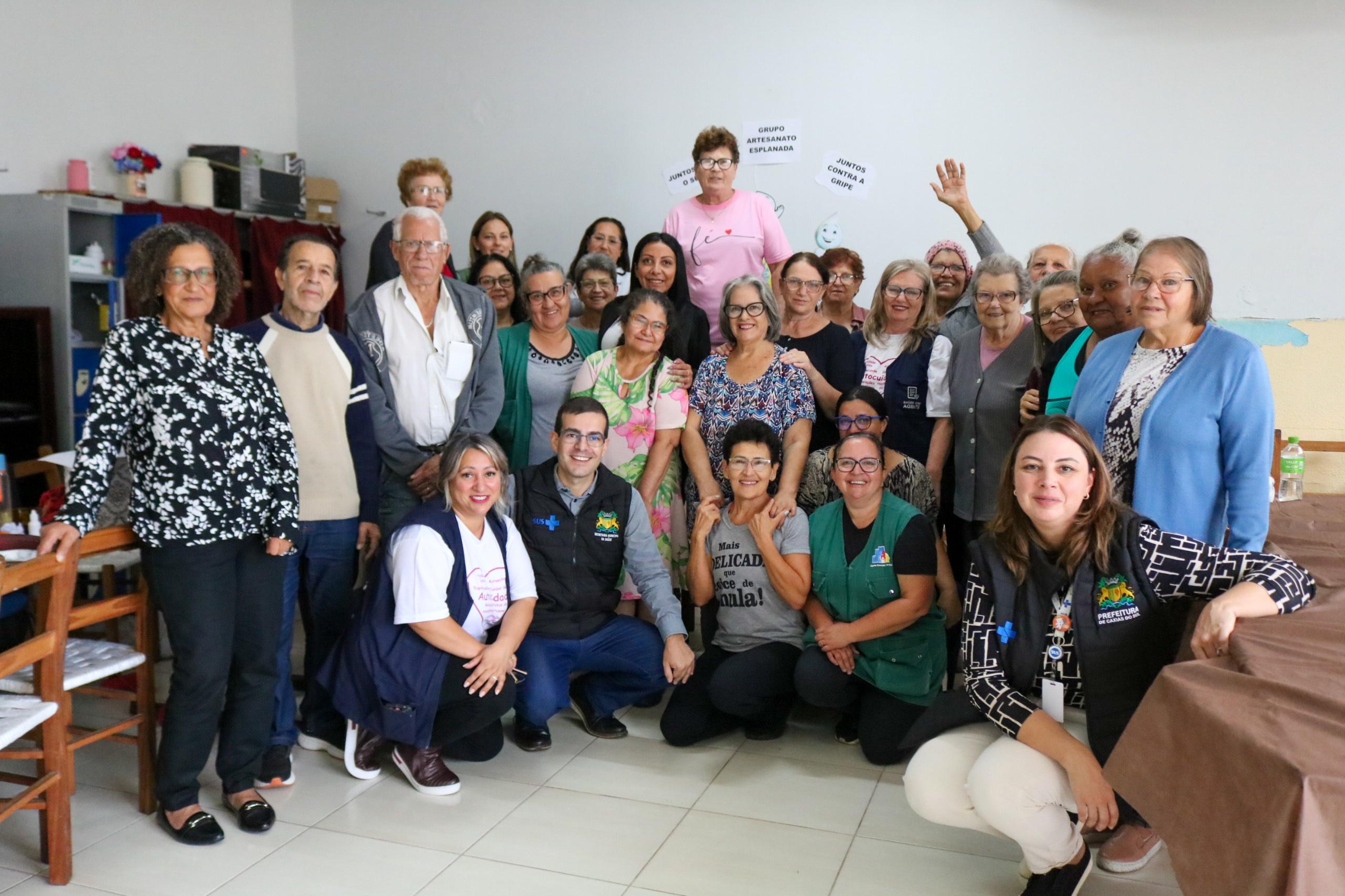 A diretora da Atenção Primária da SMS, Ediléia Sganzerla, destacou a importância do trabalho com a prevenção. E que a vacina é o começo para prevenir doenças futuras. “A gente tem trabalhado fortemente com a questão das eMulti (equipes Multiprofissionais na Atenção Primária à Saúde) nas unidades básicas… Então, saúde é um complemento, bem-estar físico, mental, social, né? É isso que a gente tá fazendo aqui hoje. A gente quer trabalhar a prevenção, quer que vocês estejam trabalhando a prevenção”, frisou.