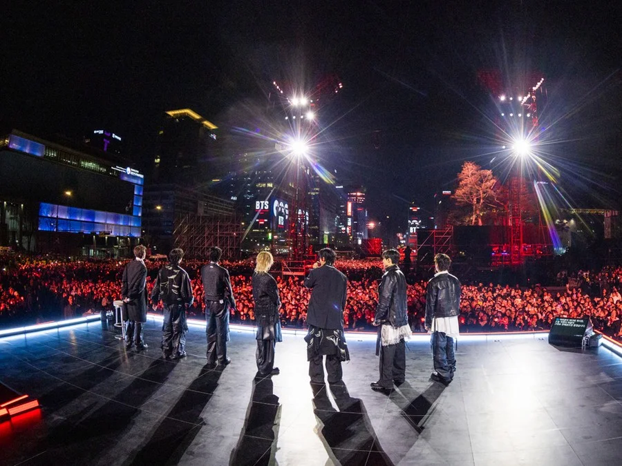 O show de retorno foi realizado no sábado em frente ao histórico palácio real Gyeongbokgung, onde milhares de fãs, tanto sul-coreanos quanto estrangeiros, cantaram em coro as músicas do grupo.